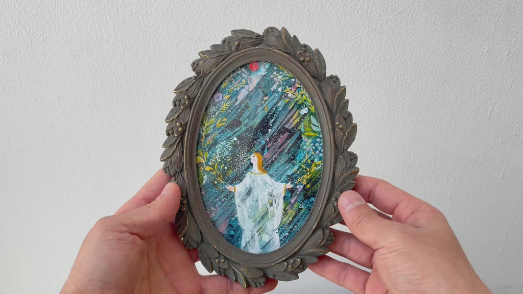 寸法:原画 H15×W10.3cm 額装 H20×W14.5×D1.5cm
