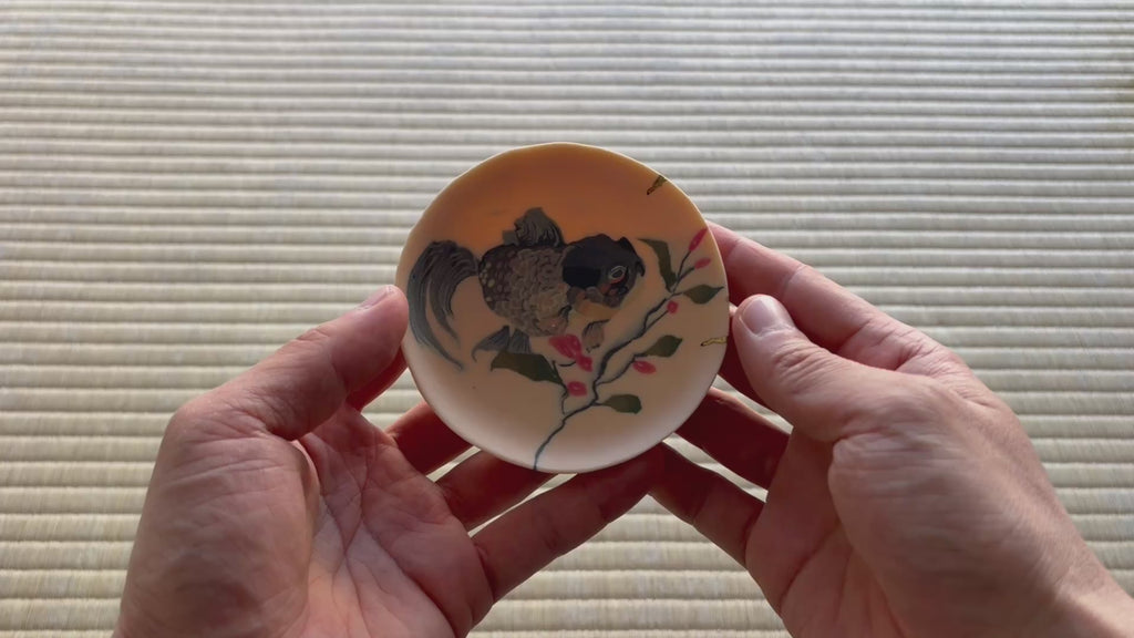【期間限定】《干支物★縁起物展 2025》高橋由紀子 南天と金魚の盃(黒) THYHGN006